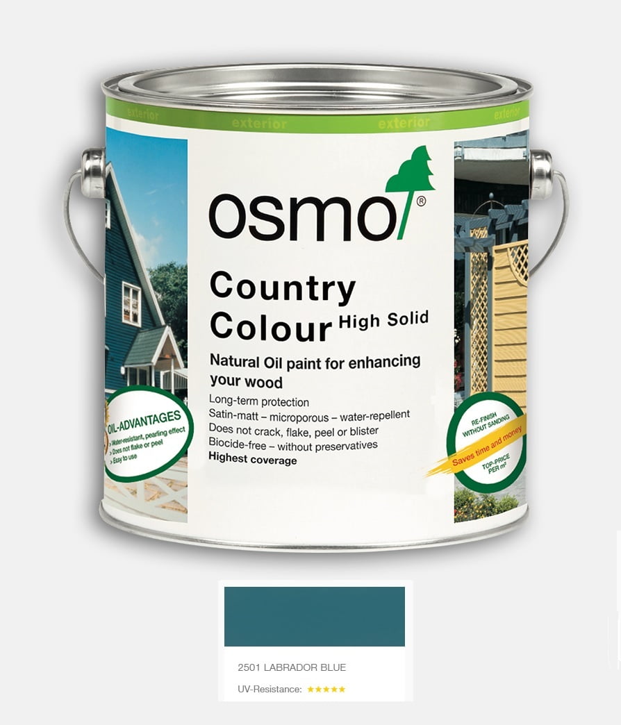 Osmo Country Colour is best suited for all wood in outdoor areas where an especially durable coating is required: timber cladding, balconies, windows and window shutters, fences, pergolas, wooden shingles, garden furniture and summer houses, carports etc. Ideal for renewing old microporous finishes and weath- ered wooden surfaces.